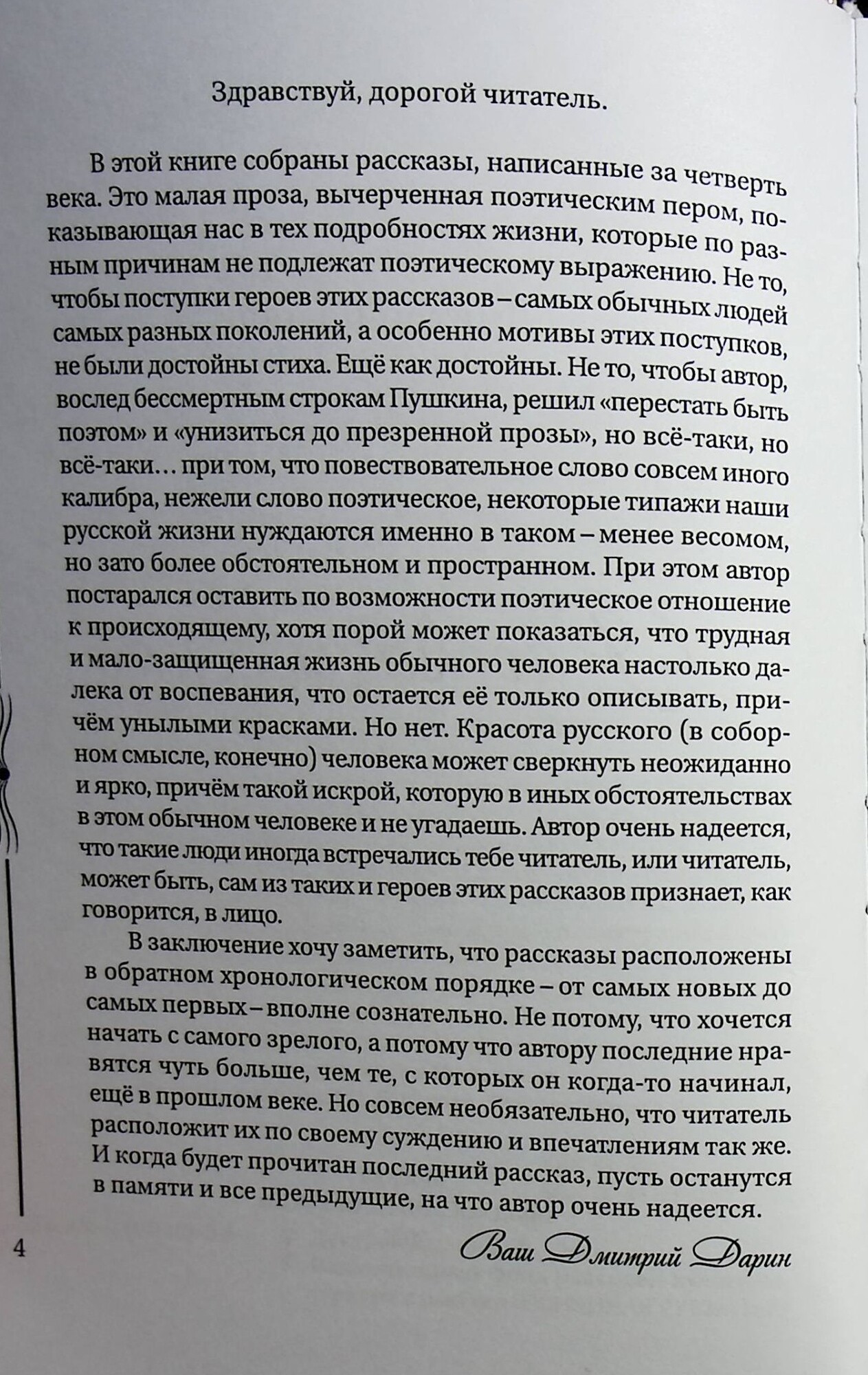 Эти 40 рассказов члена Союза писателей России и ЛНР,лауреата многих литературных и музыкальных премий Дмитрия Дарина написаны, а вернее говоря,записаны за самой жизнью, в которой автору встречались самые разные люди-со своими судьбами и историями,когда трагичными ,когда комичными, но редко- скучными.