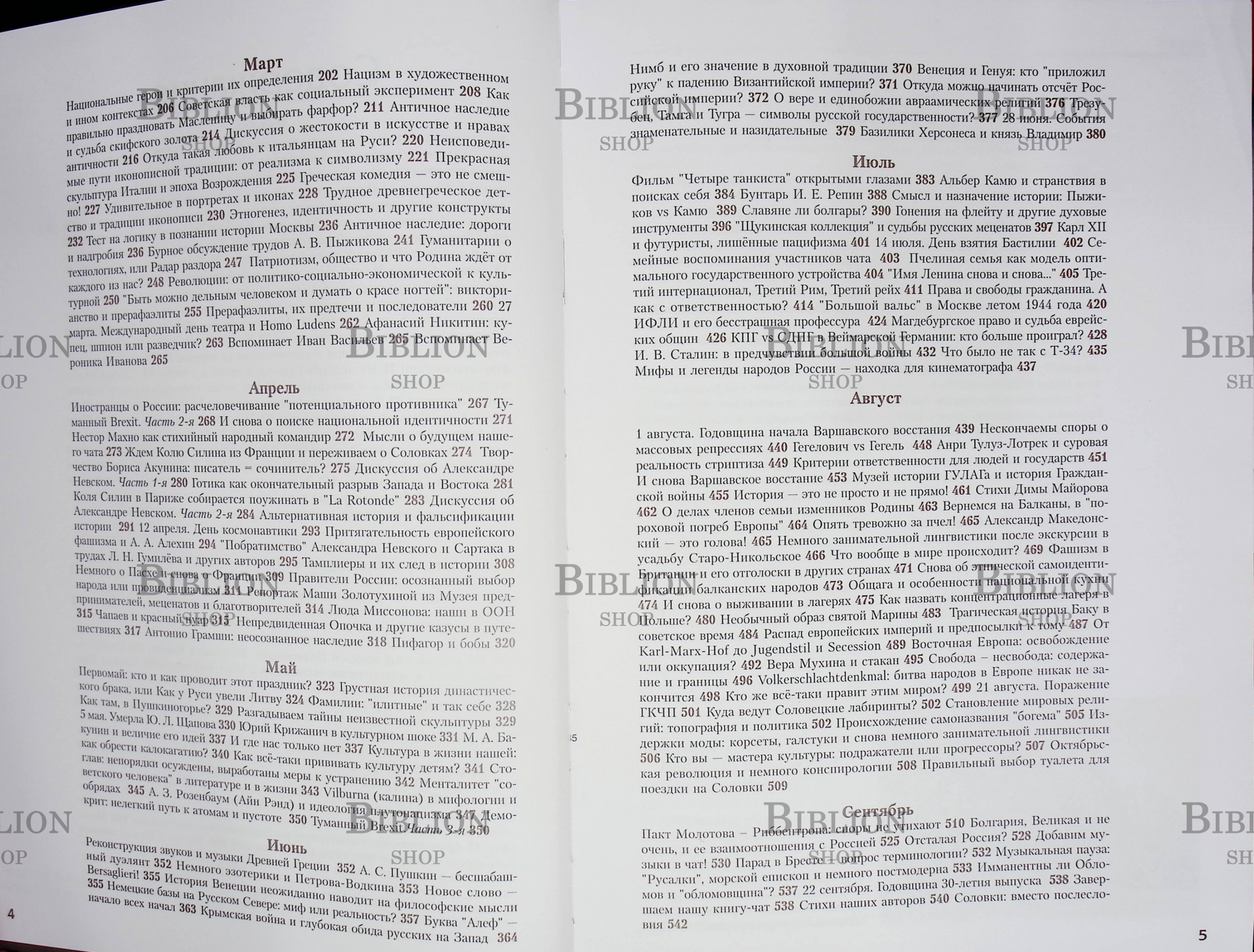 В книге, в частности, обсуждаются темы раскопок в Крыму, Курской битвы и других сражений Великой Отечественной войны, 100-летия РКСМ, гаплогрупп как инструмента познания этногенеза, «экспериментальной» и «чистой» науки, русского государства Литва, экспедиции на Соловки и многие другие.