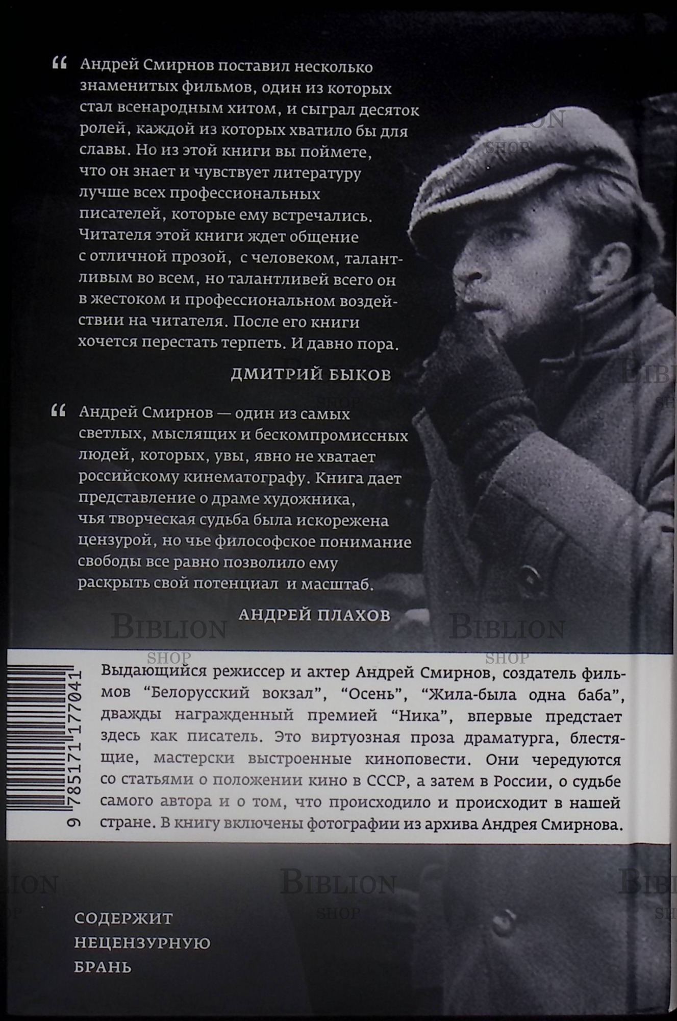 Выдающийся режиссер и актёр Андрей Смирнов ,покоривший публик в 1971 году легендарным "Белорусским вокзалом", лауреат двух премий "Ника" (в 2000 году за роль Бунина в фильме "Дневник его жены" и в 2012-м за фильм "Жила-была одна баба"), был отлучен от режиссуры советскими цензорами и много лет не снимал кино. Эта книга впервые представляет Андрея Смирнова -писателя. Проза Андрея Смирнова изначально связана с кино. Эта виртуозная проза драматурга,блестящие, мастерски выстроенные киноповести. Они чередуются со статьями о положении кино в СССР, а затем и в России,о творческой судьбе самого автора и о том, что происходило и происходит в стране. В числе опубликованных текстов сценарий нового фильма "Француз".