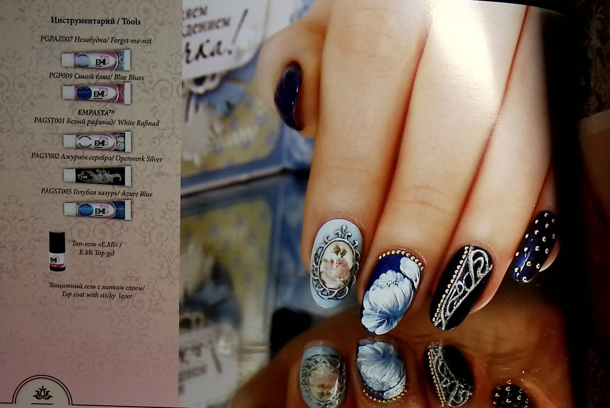 Каталог демонстрирует нейл-арт, выполненный в новой авторской технике «Багетная лепка» и «Декупаж». Каталог адресован мастерам ногтевого сервиса, желающим научиться создавать дизайн ногтей по мотивам винтажных украшений передовых модниц: шармы, роскошные узоры, причудливые броши золотого и серебряного цвета. Дизайн ногтей, изображенный в каталоге, выполнен при помощи EMPASTATM.