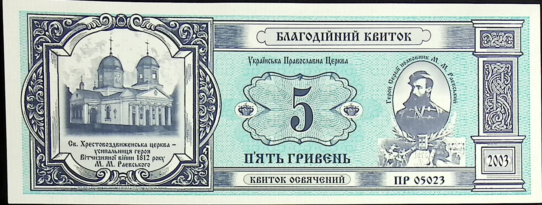 Благотворительный билет выпущен Украинской Православной Церкви Благотворительном фондом им. М.М. Раевского .