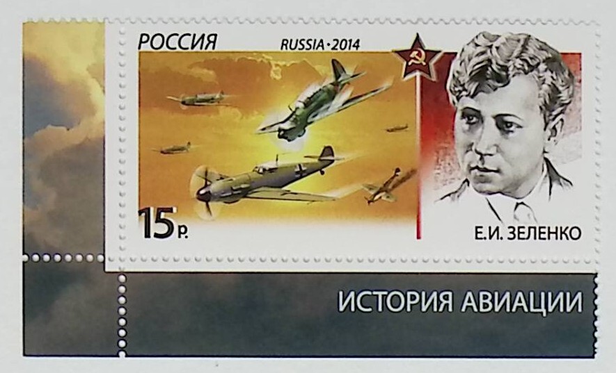 История авиации. Воздушные тараны, Зеленко Е. И. ( Марка Россия 2014 )