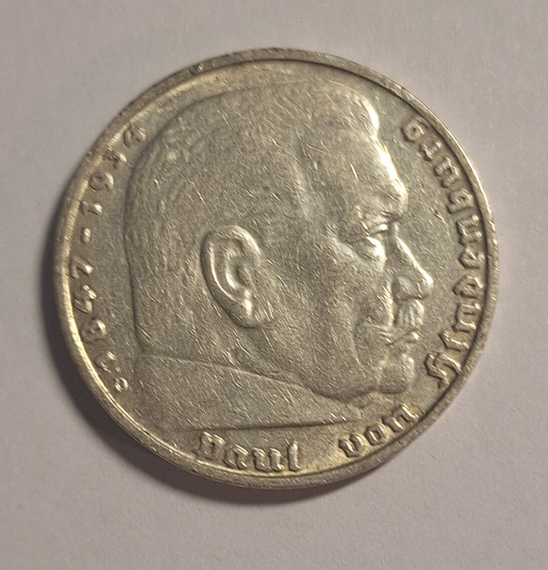 Монета Третьего Рейха номиналом 5 марок 1936-1939 года с портретом Пауля Фон Гинденбурга