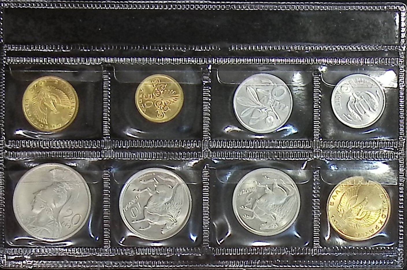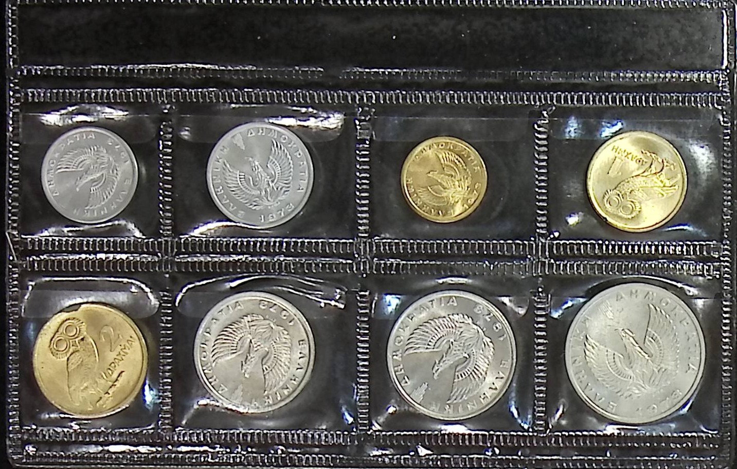 1 драхма;2 драхмы; 5 драхмы; 10 драхмы;20 драхмы; 20 лепта;10 лепта; 50 лепта