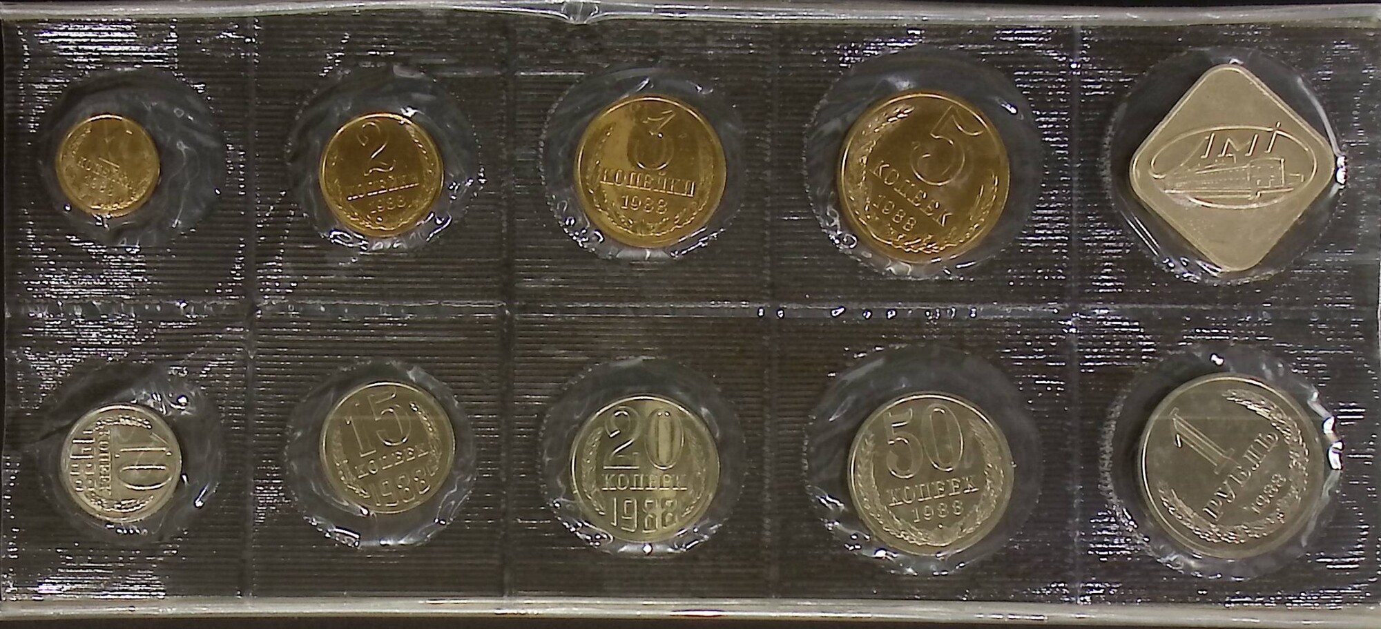 Главная Интернет-магазин Коллекционирование Нумизматика Отечественные монеты Годовой Набор монет СССР 1988г с жетоном ЛМД (Оригинал,в родной запайке )