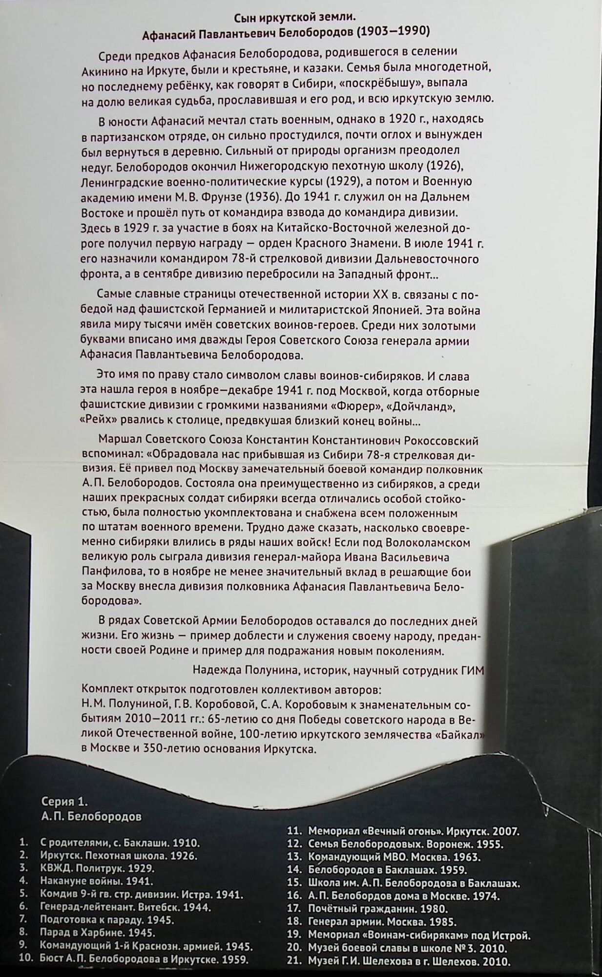 Белобородов Афанасий Павлантьевич-сын Иркутской земли (Набор открыток)