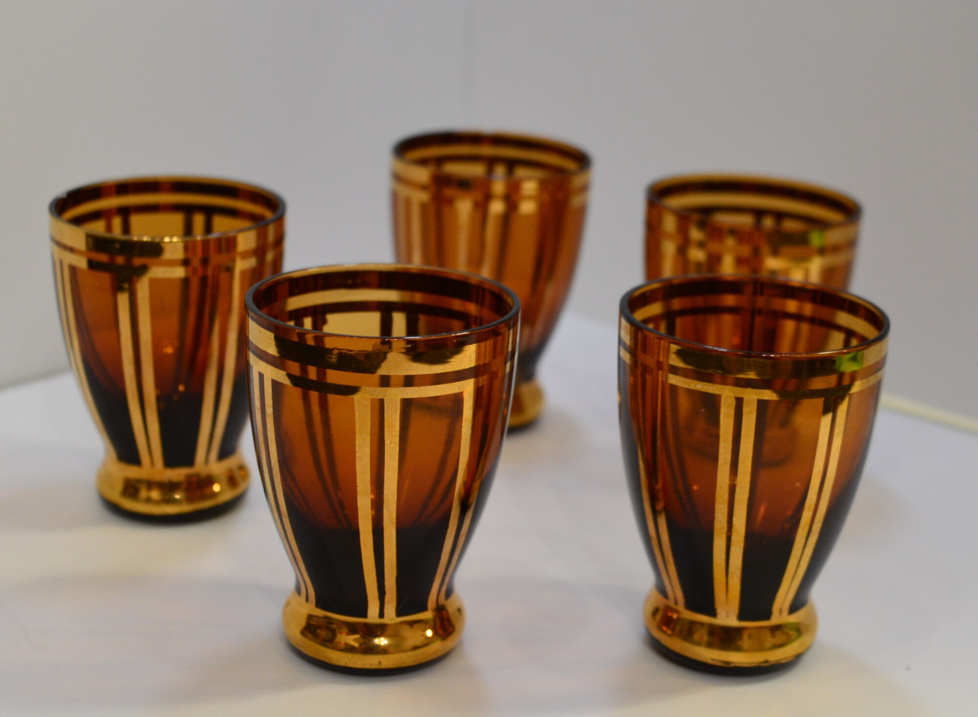 Набор рюмок из цветного стекла ( Богемия, Чехословакия, янтарное стекло,золотой орнамент,винтаж)