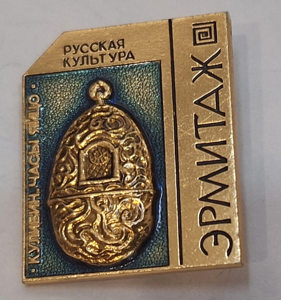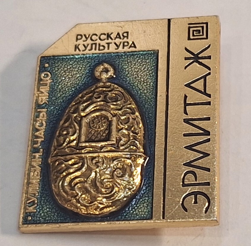 Значок Эрмитаж .Кулибин.Часы-яйцо из набора "Русская культура " Редкий ! (СССР)