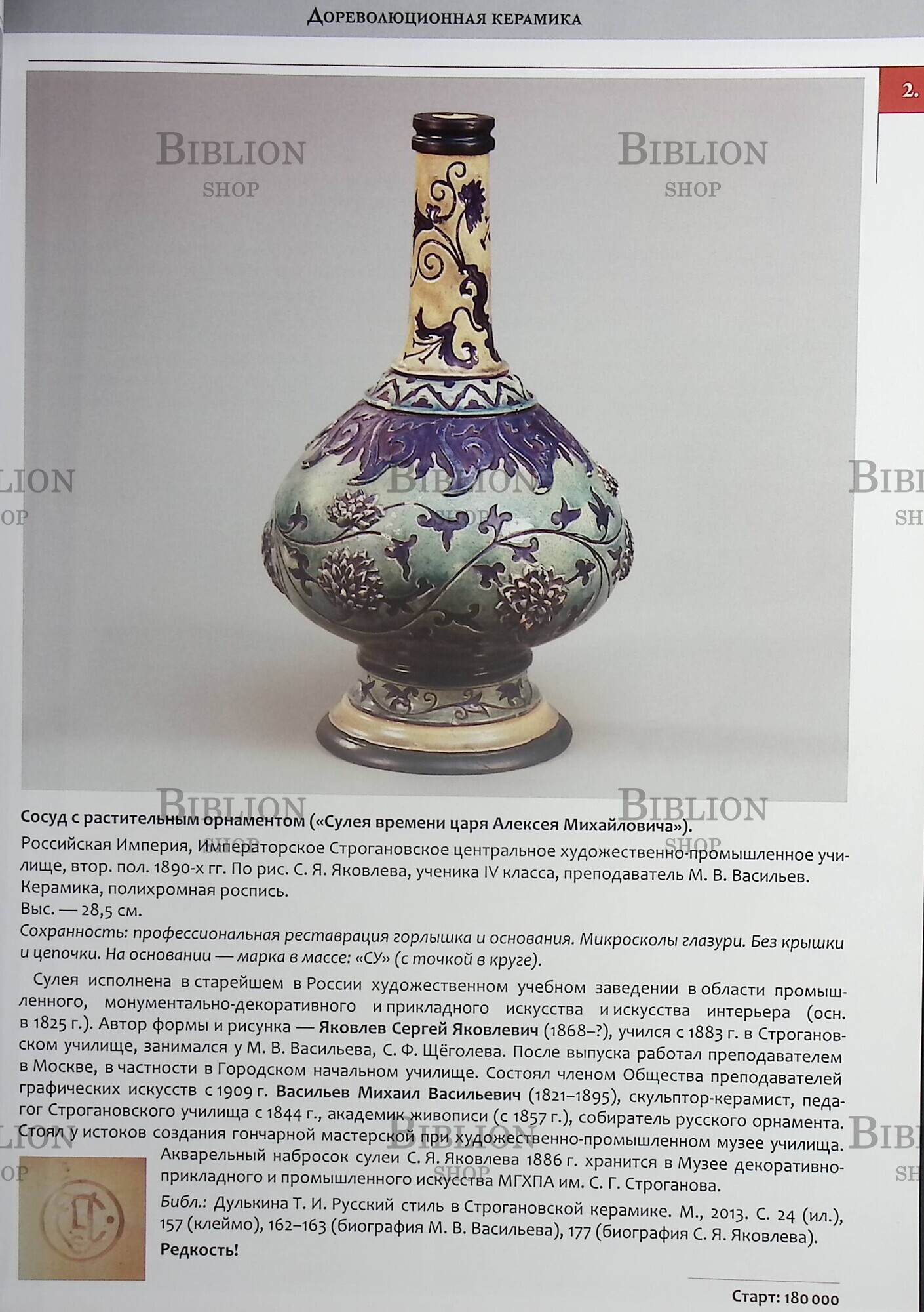 Каталог Аукцион №10 Советский и постсоветский и малотиражный фарфор и фаянс.1917 г.- нач.XXI в., а также редкие образцы дореволюционной керамики.