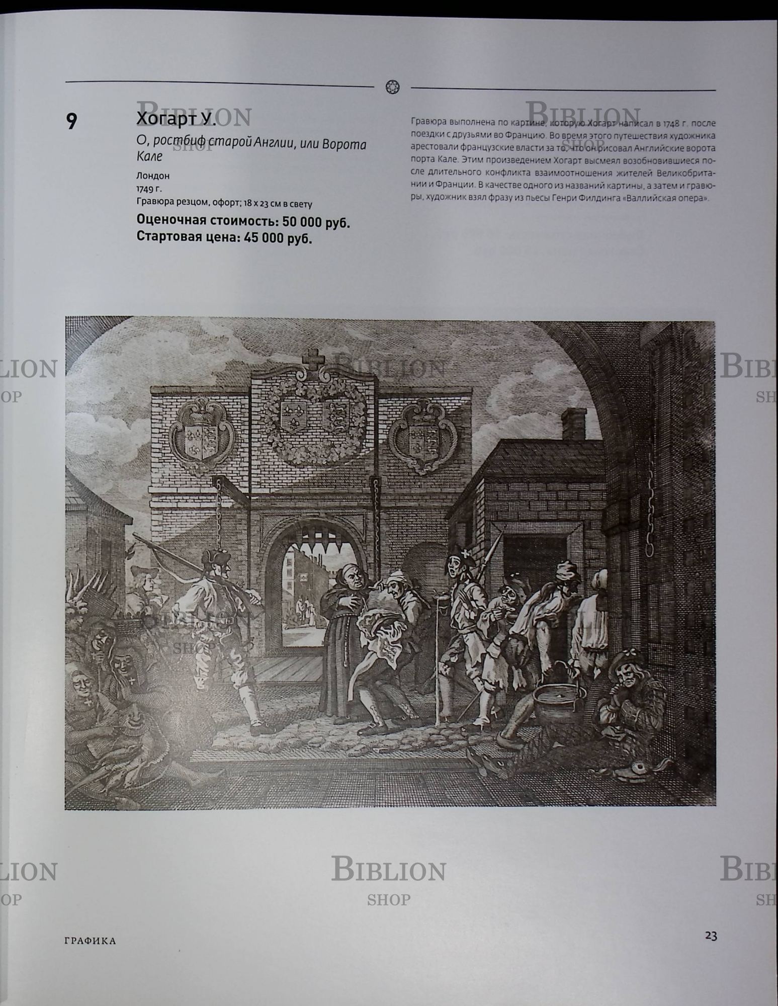 В каталоге представлены произведения мастеров Западной Европы, среди которых: В. Вайан, И. Хамильтон, У.Хогарт, Ф. Мусин, Я. Гайссер, О.Огэн, Ж.Симонс, М.Энгер, С. Беккер-Лебер.