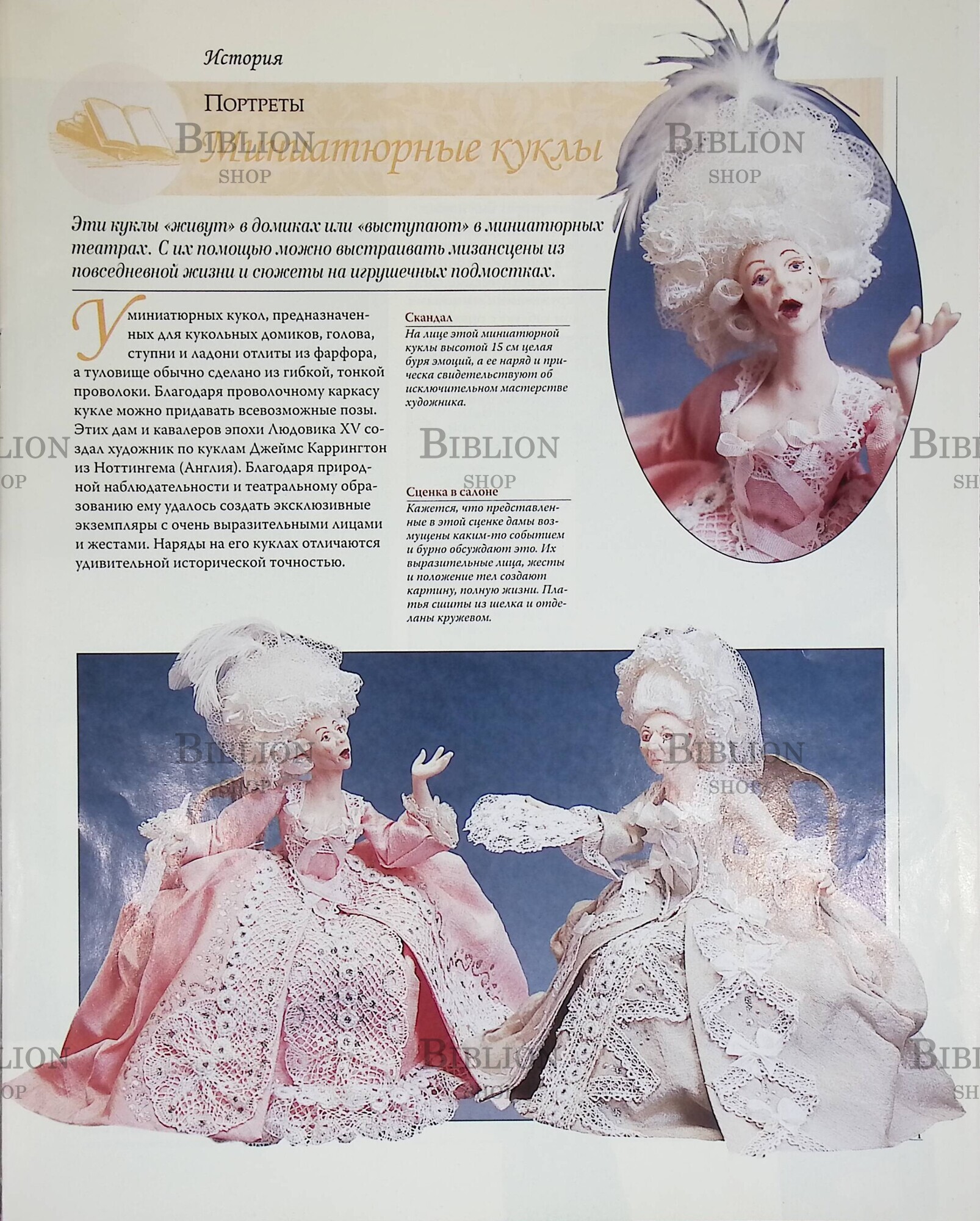 Разделы журнала посвящены истории кукол, моде различных эпох, стран и континентов, рассказы о героинях и авторах романов о них.