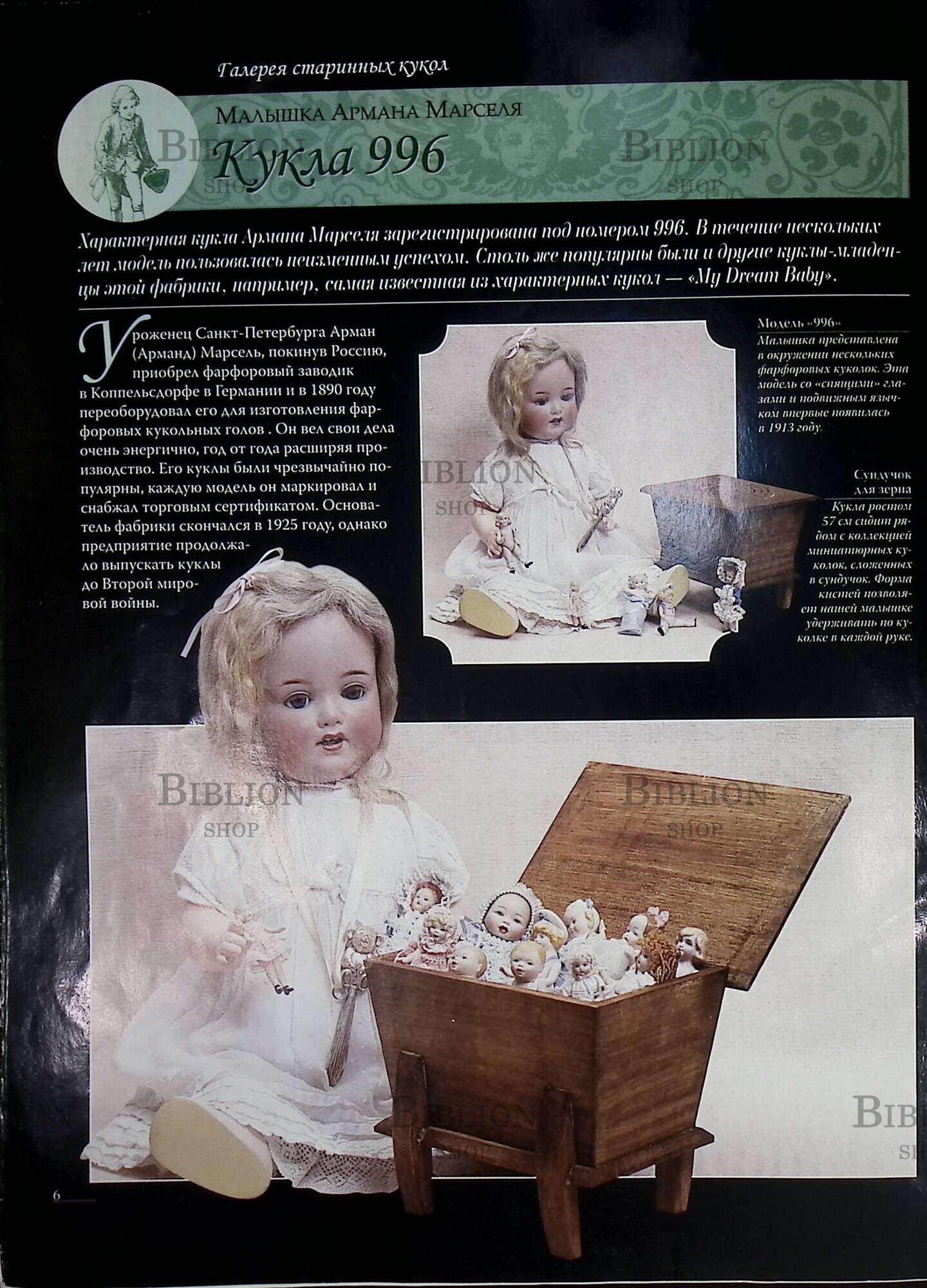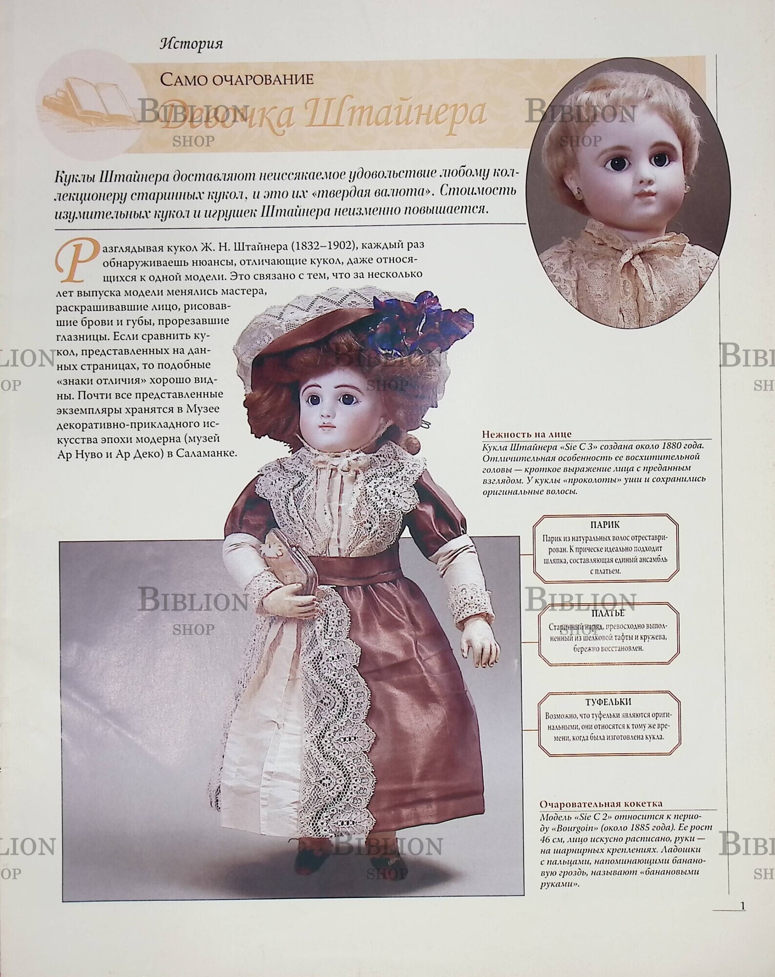Разделы журнала посвящены истории кукол, моде различных эпох, стран и континентов, рассказы о героинях и авторах романов о них.