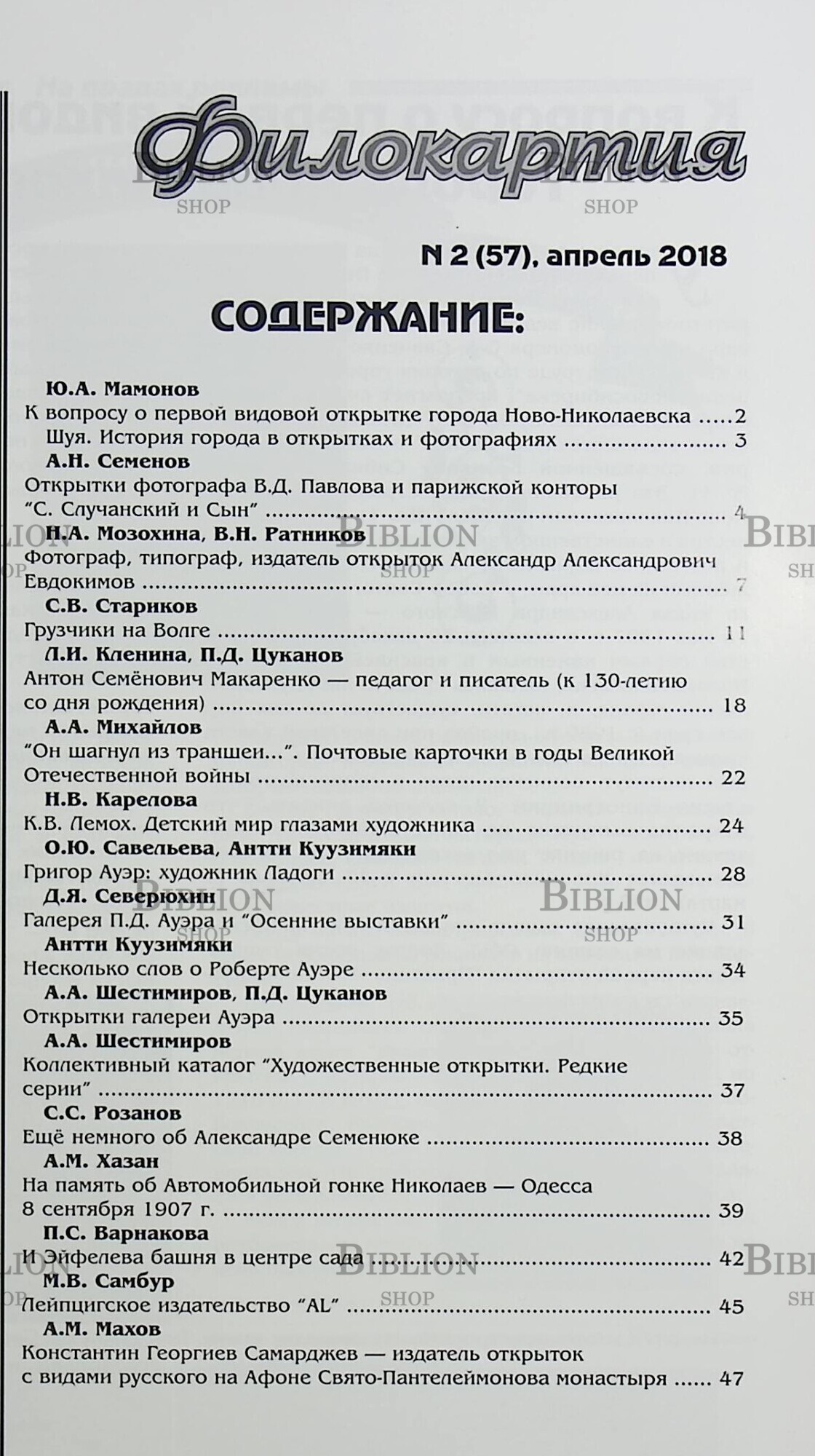 Филокартия №2 (57) 2018 г. ,(Журнал по филокартии)