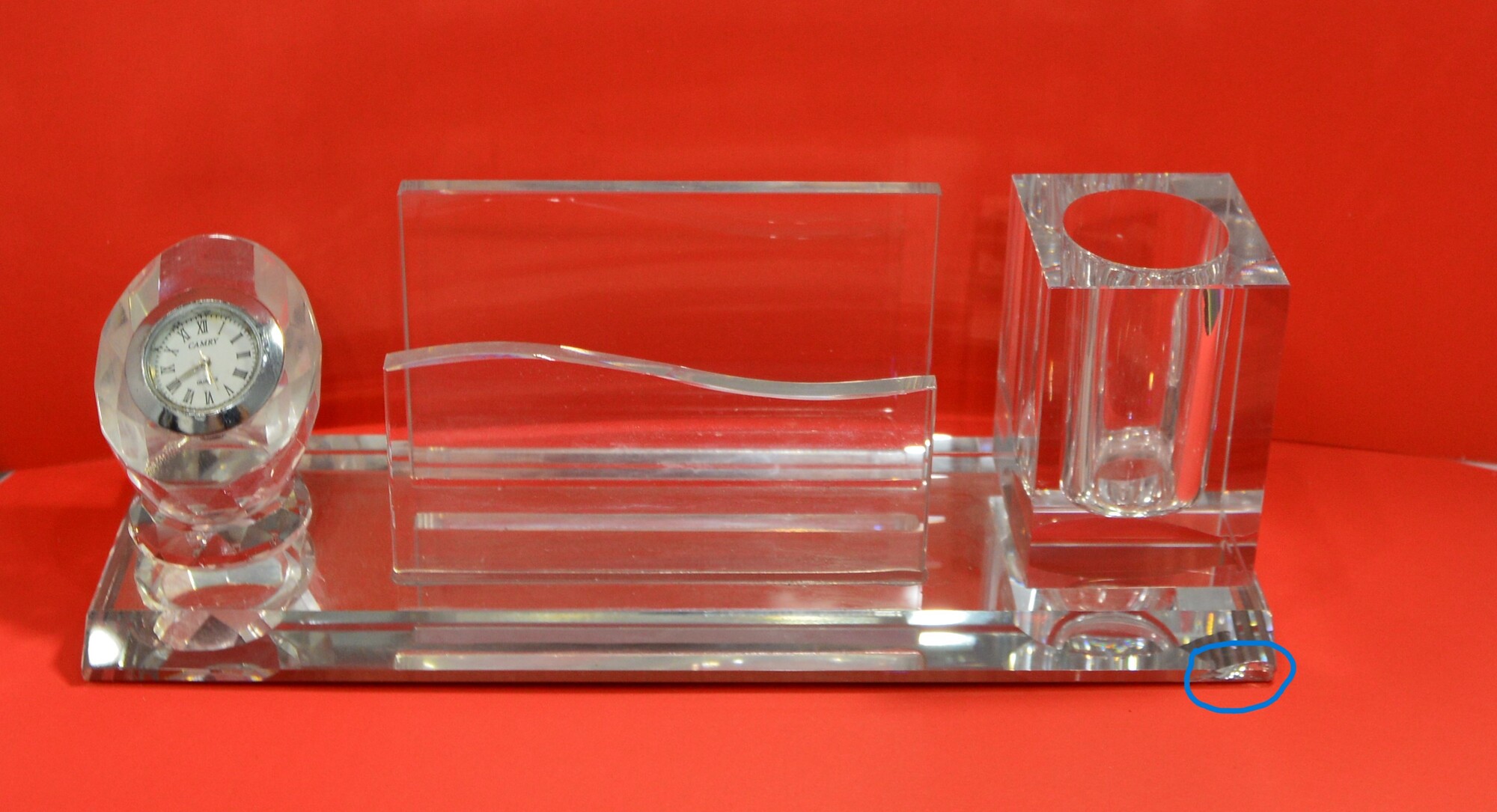 Настольный набор 3 в 1 (Карандашница,визитница,часы )